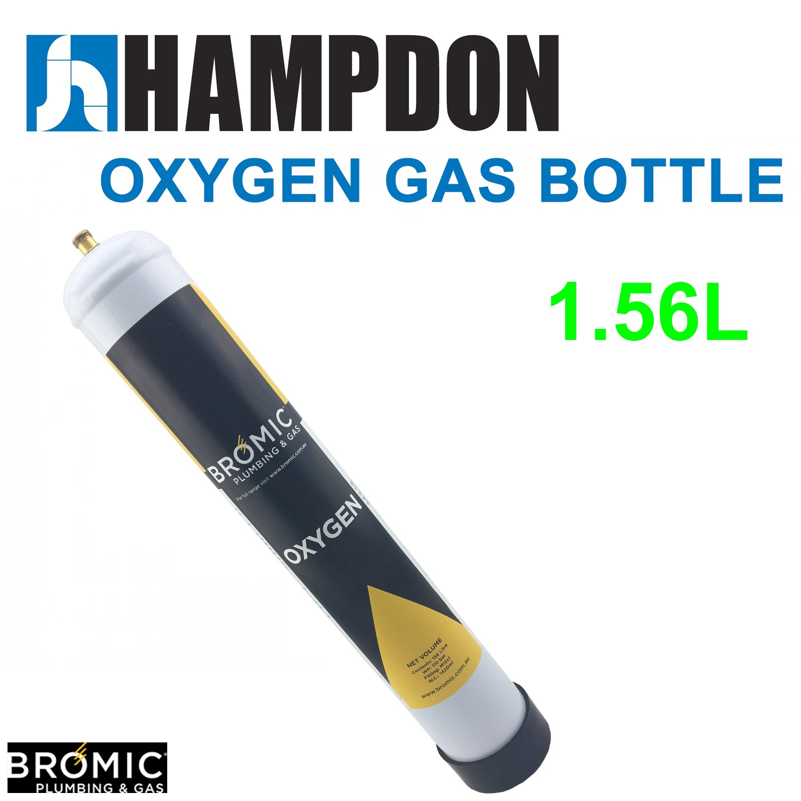1 x Bromic 1.56 litre Disposable Oxygen Gas Bottle – 12mm Thread 400300 – Made in Italy