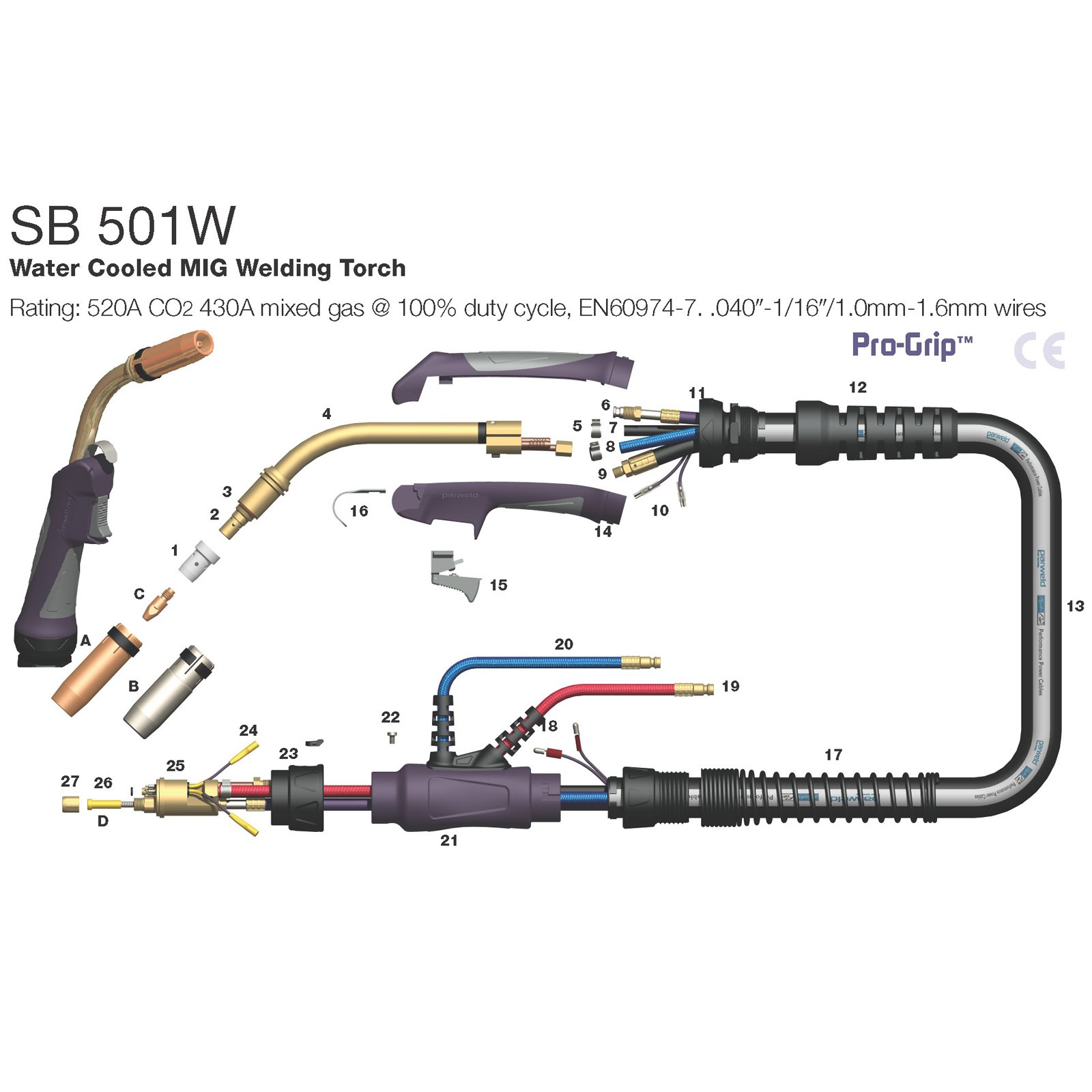 The Parweld range of water-cooled MIG torches are built for operator comfort and provide excellent performance and ergonomics when welding with the greater heat levels generated by higher amperage applications