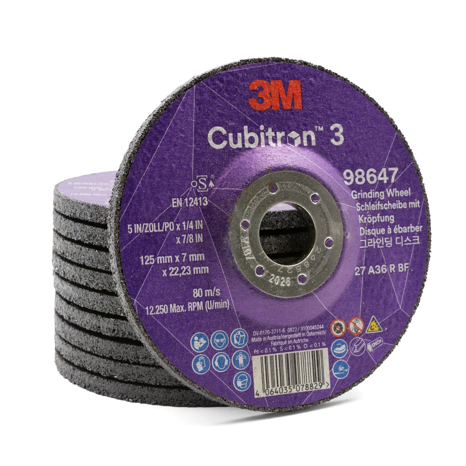 3M 125mm / 5″ x 7mm 36 Grit Cubitron 3 Depressed Center Grinding Disc – 10 Each 98647