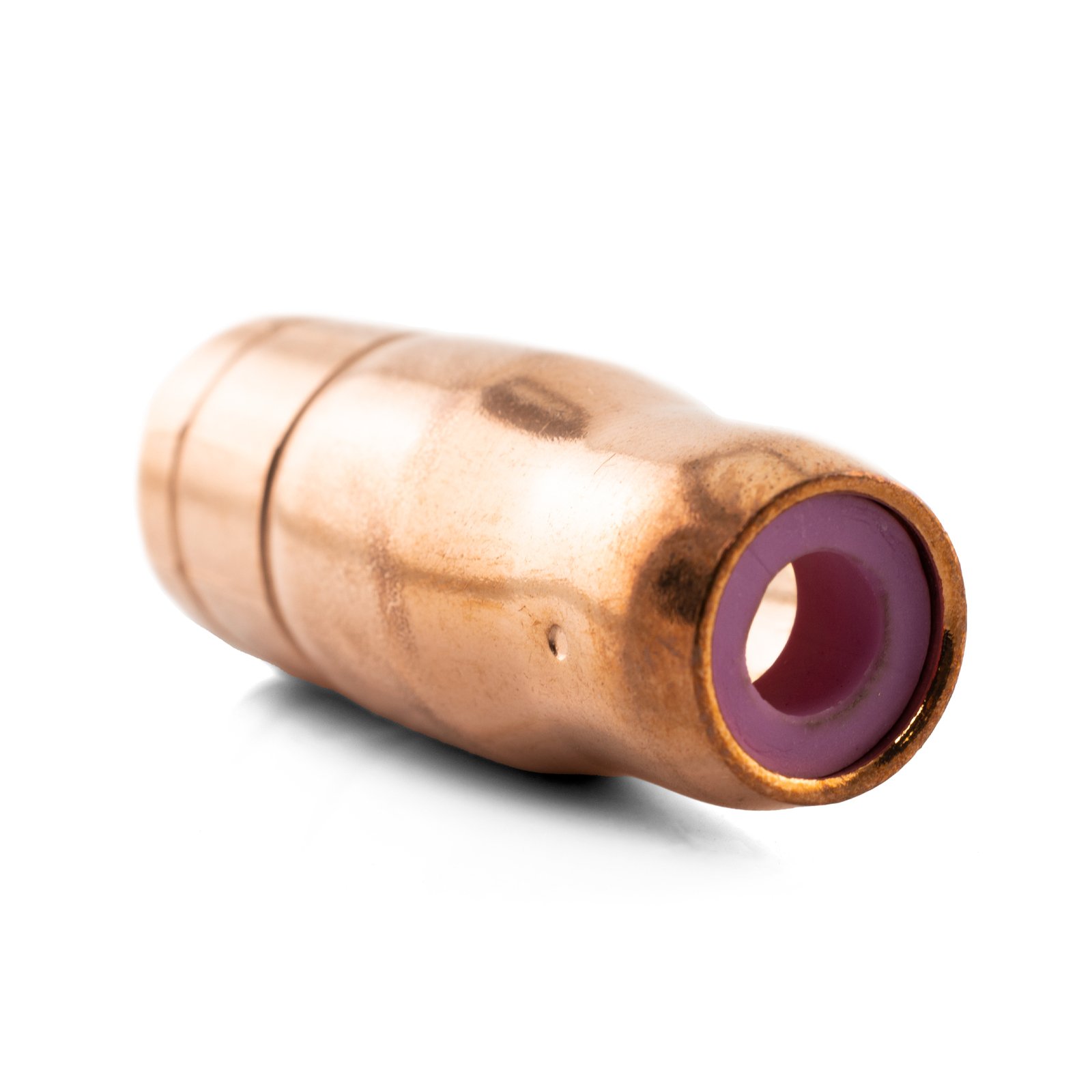 Welding with flux-cored wire? The Gasless MIG Nozzles are exactly what you need for a cooler, cleaner weld. The inner ceramic ring works to insulate the weld the same way gas would for a normal MIG weld, keeping your contact tip cooler and extending its life. The snug fit of the nozzle will keep any spatter from the flux out of the nozzle and off the rest of the consumables. With a narrower tip, the gasless nozzle means you can keep your consumables protected and maintain greater visibility of the weld.