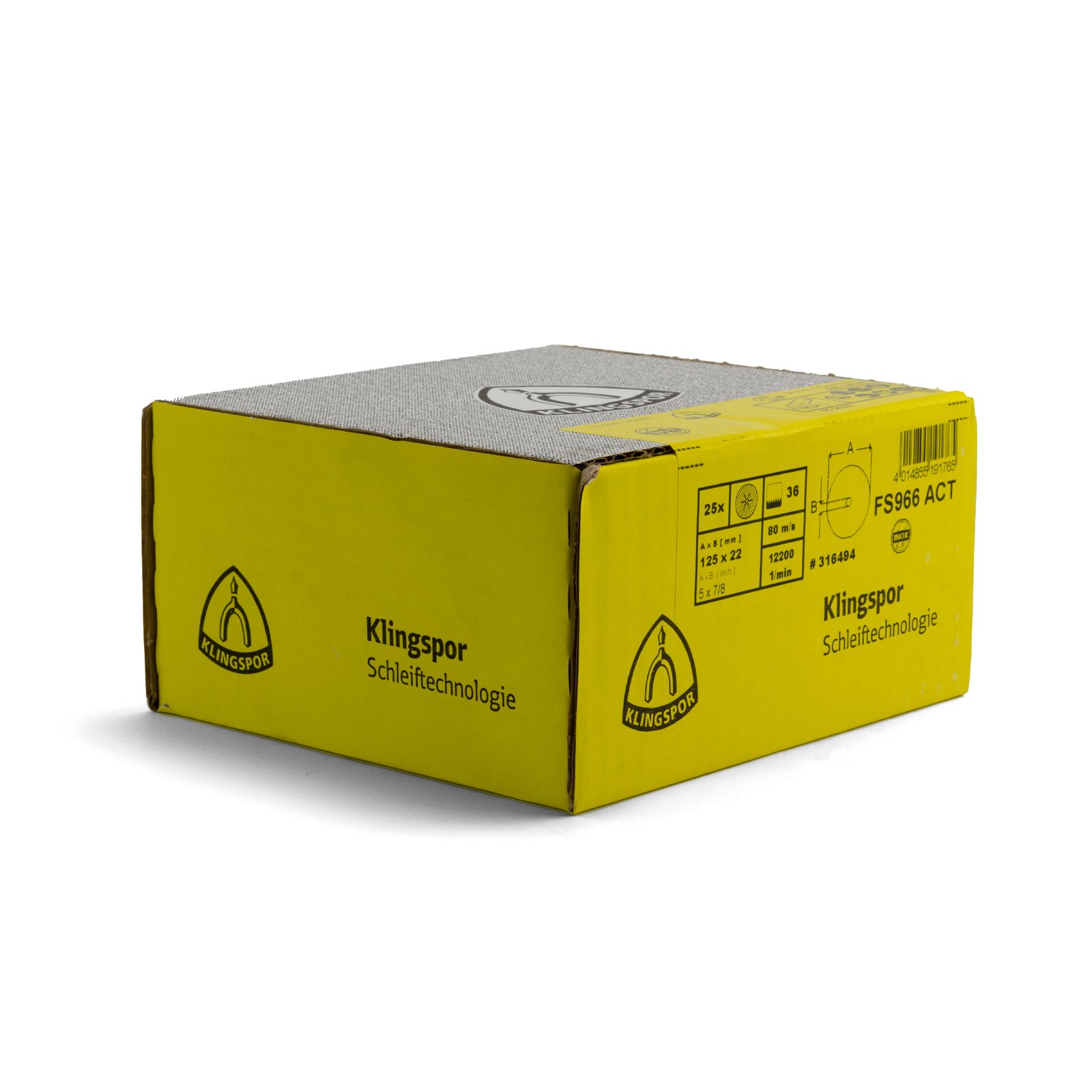 Klingspor FS 966 ACT 125mm Ceramic Resin Fibre Sanding Disc Pad 5″ 36 Grit – 25 Each