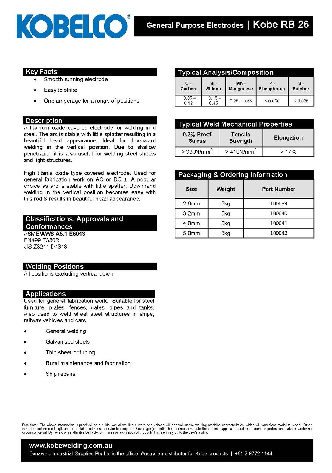 Kobelco RB 26 x 5.0mm x 5kg E6013 Electrodes