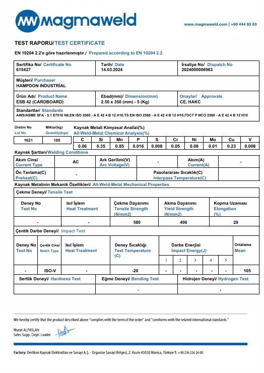 Hampdon Industrial stocks the premium range of Magmaweld Rutile & Basic Electrodes. The E7016 is an unsurpassed covered electrode for melt-through root-pass welding, or one-sided root pass welding with penetration beads. The E7016 offers confidence in the quality of your welds in any kind of pipe welding of mild steel. E7016 Electrodes offer superior crack resistibility due to lower amount of diffusible hydrogen in the weld metal. Alongside this the 7016 deposits less metal so protecting it from the atmosphere where a root is more susceptible and offers protection from cracks or porosity.