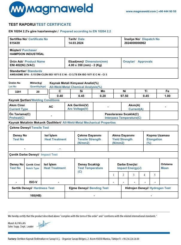 Hampdon Industrial stocks the premium range of Magmaweld Cast Iron Nickel Welding Electrodes. The ENi99 is a 99% Nickel electrode. The higher nickel content makes this electrode exceptionally stronger and more expensive than its 55% equivalent. Due to its hardness, consideration must be given when the casting is to be machined after welding. Repairs made with ENi99 electrodes are often single pass welds and works best on castings with low or medium phosphorous contents.