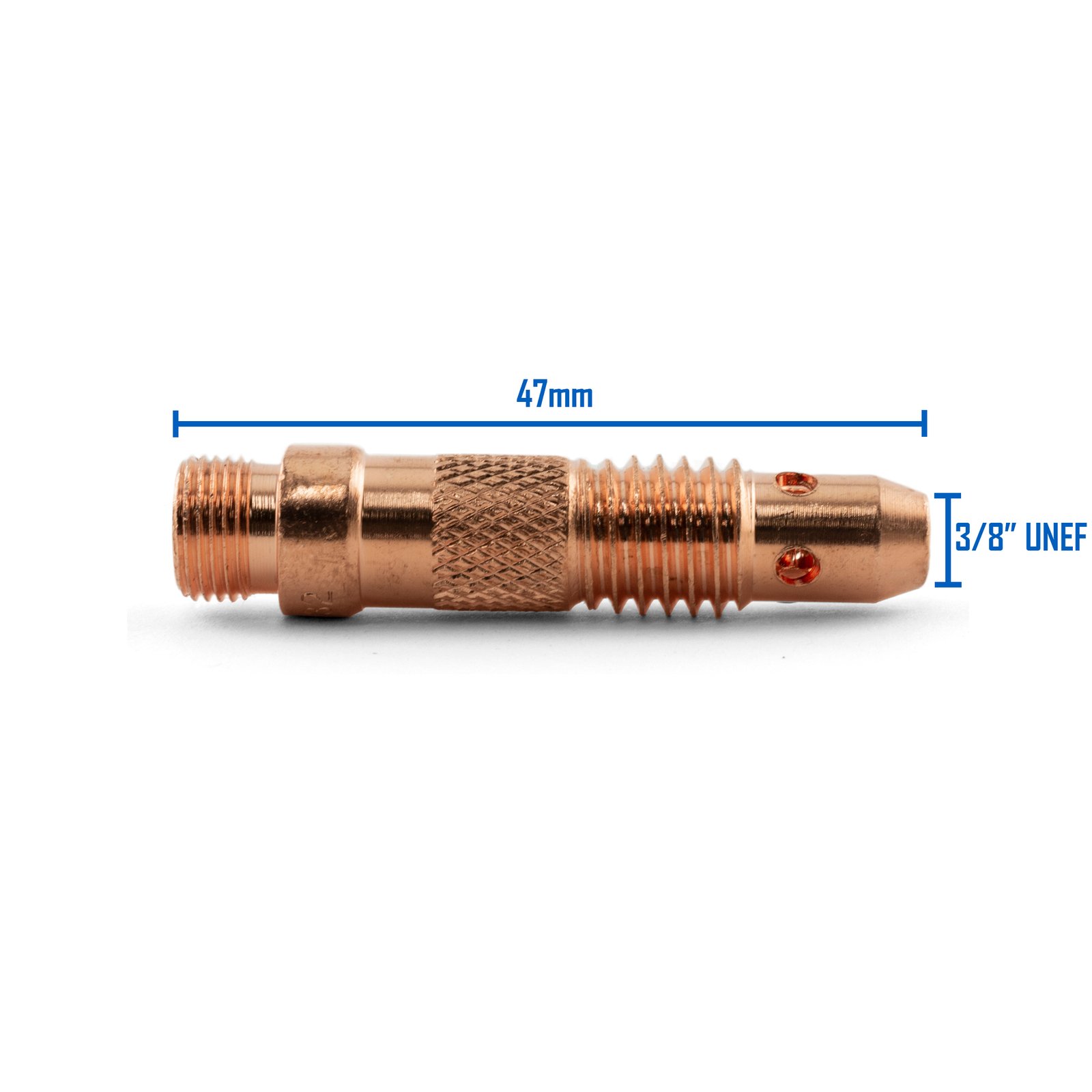 Hampdon Industrial TIG Collet Bodies. Manufactured from higher quality copper than OEM, these collet bodies are to suit 17, 18 & 26 series TIG torches. We stock a full range of sizes to suit various torches so feel free to get in contact with us if your item is not listed.
